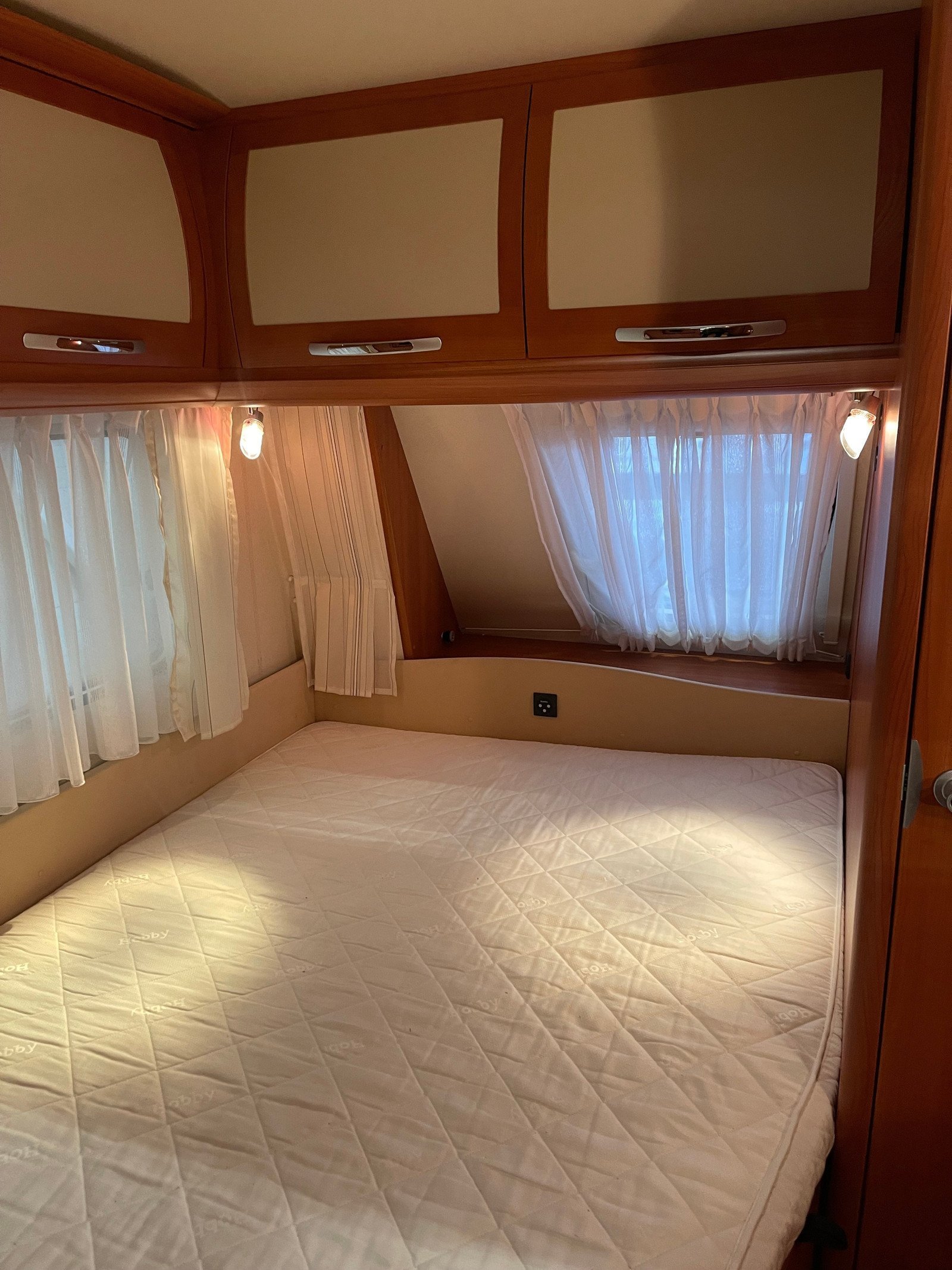 Lit double à l’avant avec lavabo idéal place à côté.