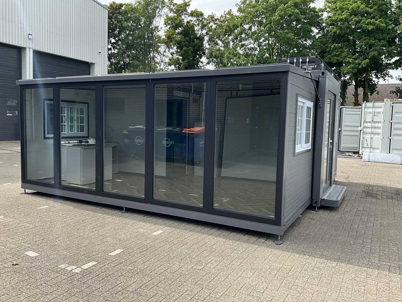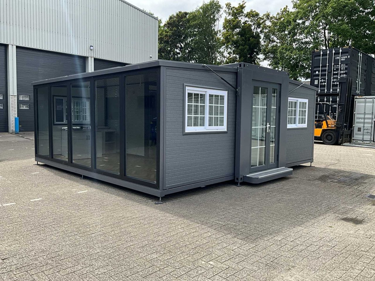 Equipé d’un toit et de murs isolés, d’une cuisine avec placards en dessous et au-dessus, d’une salle de bain avec grande douche, d’un lavabo avec armoire de toilette, de toilettes, d’un sol en vinyle à chevrons, d’un ventilateur, de 2 chambres, chaque chambre avec prises et éclairage, de cadres en plastique avec double vitrage, de toutes les portes avec serrures, entièrement verrouillables, de tous les raccordements pour l’assainissement, l’alimentation en eau et le drainage et de l’électricité prête à être raccordée, Extérieur avec panneaux en plastique aspect bois, taille de transport 5850x2200x 2550 mm