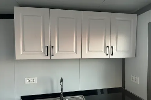 Cuisine : Coin cuisine pratique avec placards de rangement situés au-dessus, optimisant l’espace pour la préparation des repas.