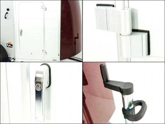 Toujours frais devant : grâce à la fenêtre avant réglable dans cinq directions, il n’y a pas d’air épais dans le XANTHOS AERO . Un déflecteur d’air installé de série et une trappe de toit pouvant être installée ultérieurement sur demande assurent également un apport d’air frais sans courant d’air. Mais le confort n’est pas la seule priorité chez Humbaur : la cloison verrouillable, les parois latérales en aluminium anodisé et le profilé de cadre galvanisé à chaud font du XANTHOS AERO une remorque pour chevaux stable et robuste pour les plus hautes exigences.