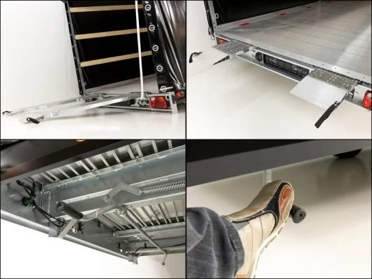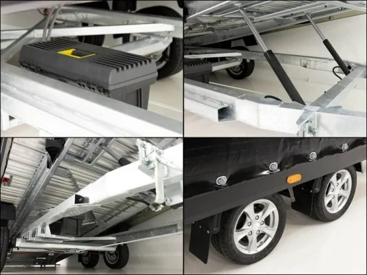 La zone de chargement peut être inclinée grâce au système hydraulique manuel