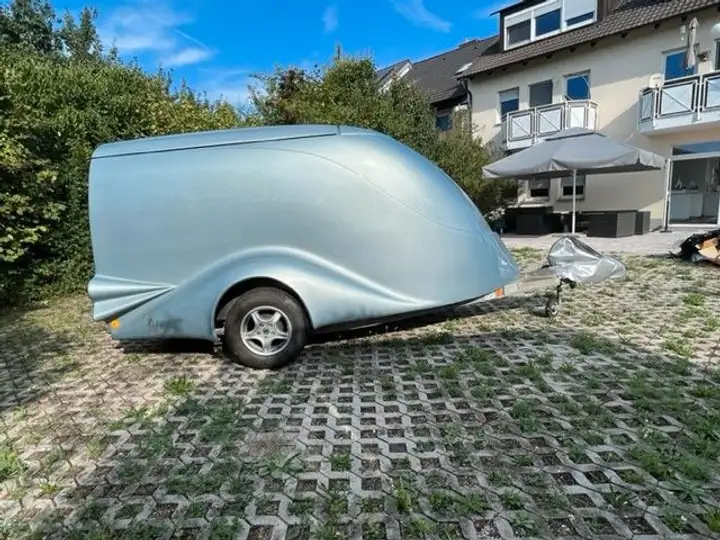 Remorque moto très bien conservée de la MARQUE PREMIUM EXCALIBUR en très bon état pour le compte des CLIENTS. Il reste encore 2 amortisseurs neufs du hayon, y compris la remorque a toujours été recouverte depuis le début d’une bâche de camion fabriquée SPÉCIALEMENT pour lui, de sorte que la peinture est en parfait état.